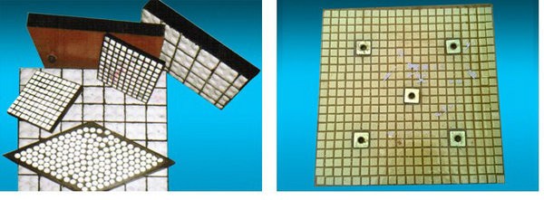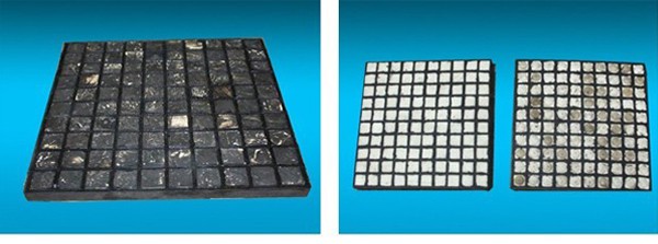 通過橡膠硫化技術(shù),將馬賽克陶瓷鑲嵌在特種橡膠內(nèi),構(gòu)成方形陶瓷橡膠復(fù)合體,在依靠焊接(三合一系列)或者高強度粘結(jié)劑黏貼(二合一)方式固定在設(shè)備的防護面上,形成堅固且有緩沖力的防磨層,較大的拓展了氧化鋁陶瓷的使用范圍。產(chǎn)品廣泛應(yīng)用于火力發(fā)電廠的輸煤、排灰系統(tǒng)及冶金鋼鐵業(yè)的輸料、配料料倉、料斗等設(shè)備,有效的解決了因物料落差大,沖擊力強,導(dǎo)致配料輸送系統(tǒng)使用壽命低的問題;同時,陶瓷橡膠復(fù)合襯板能扭曲、劃割,適應(yīng)于各種異型設(shè)備的安裝。